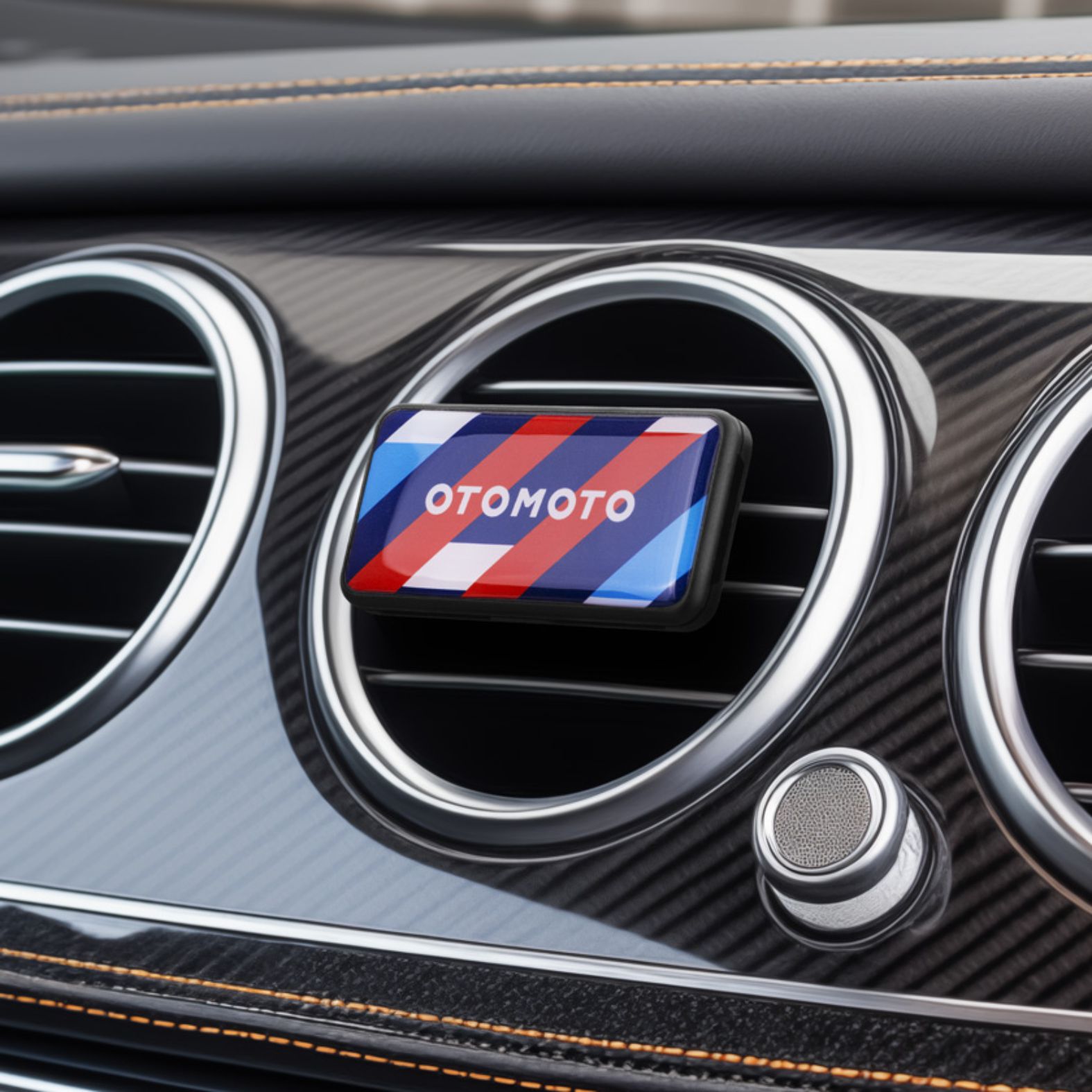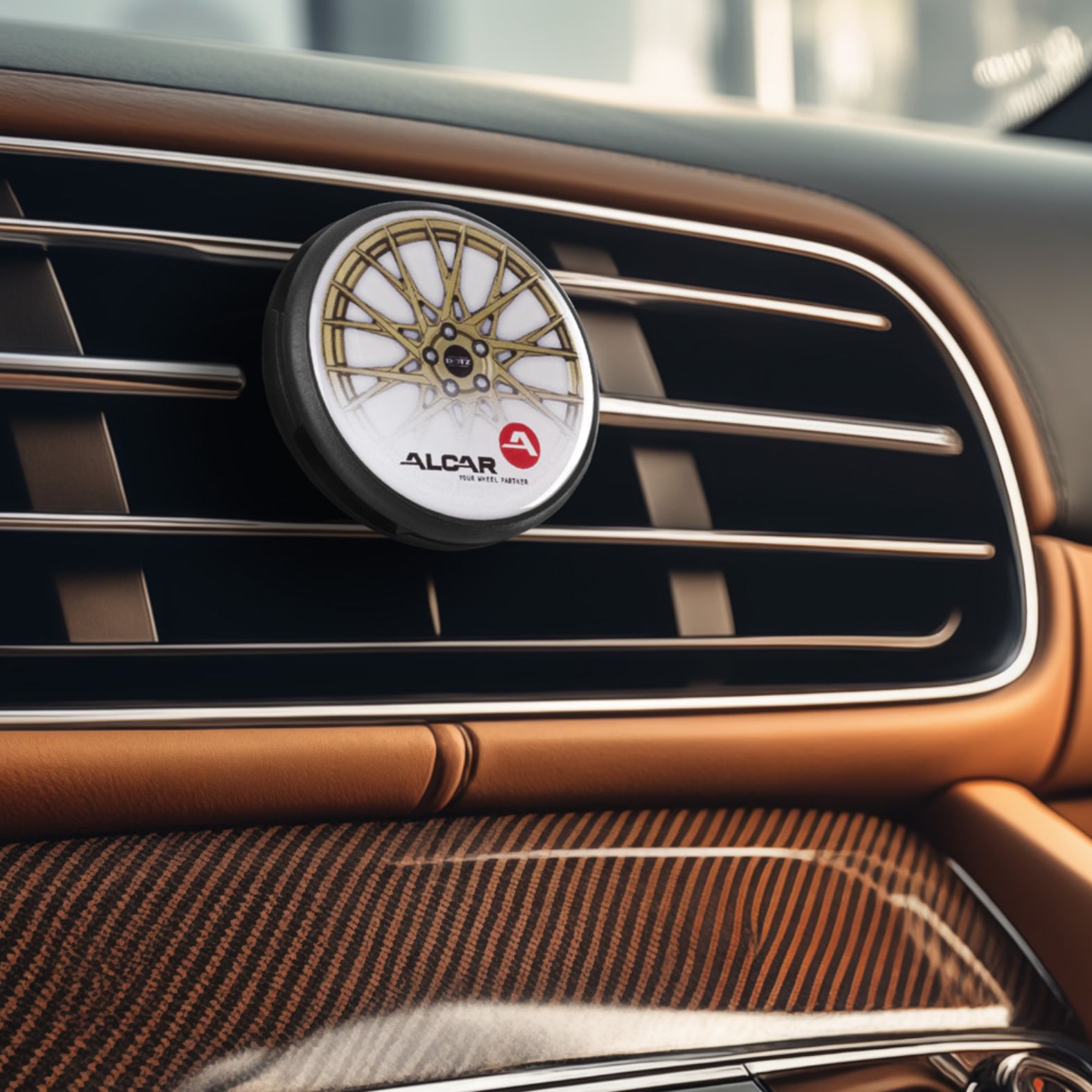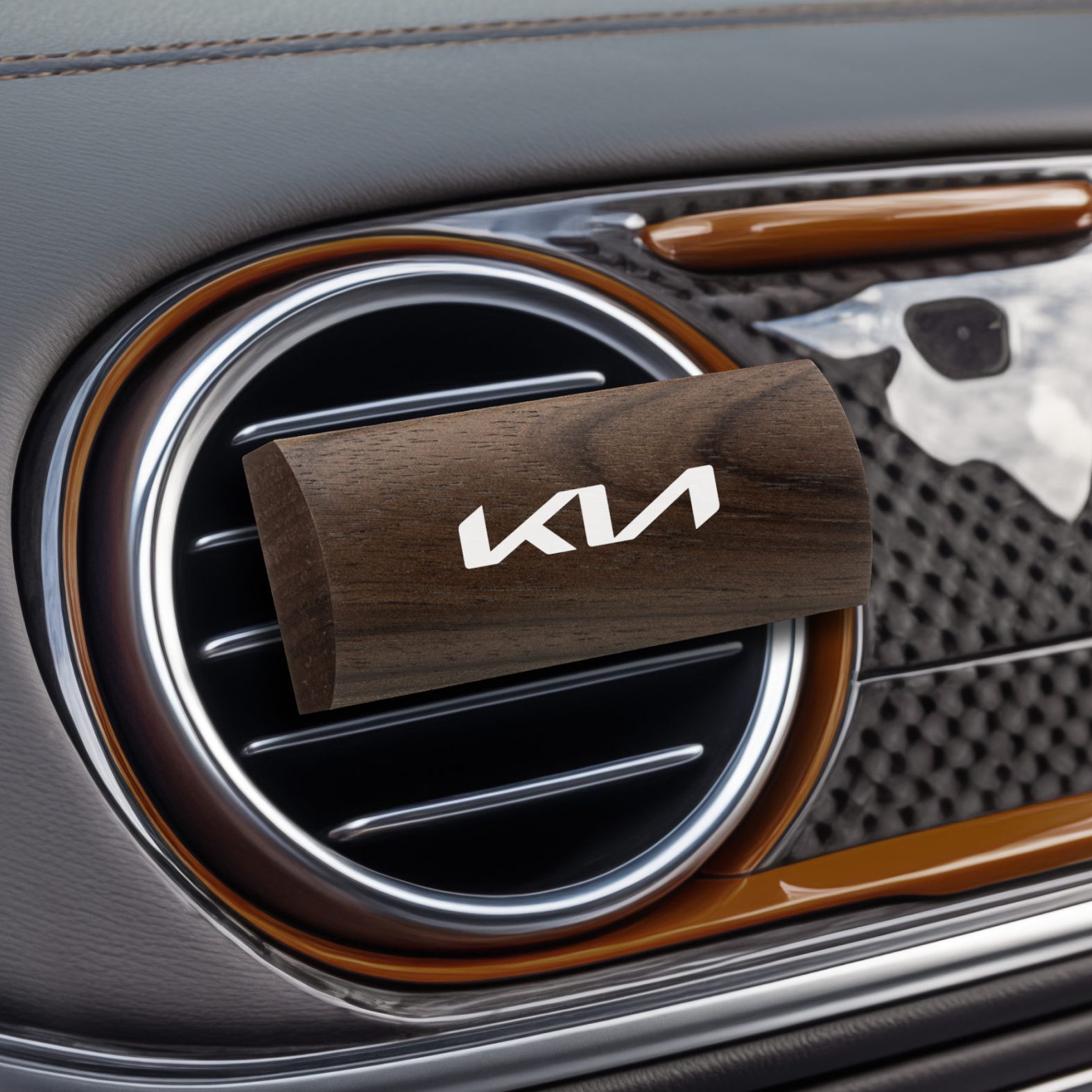Ein edler Duftclip mit ovaler Holzfront, der jedem Fahrzeuginterieur eine stilvolle und organische Note verleiht.