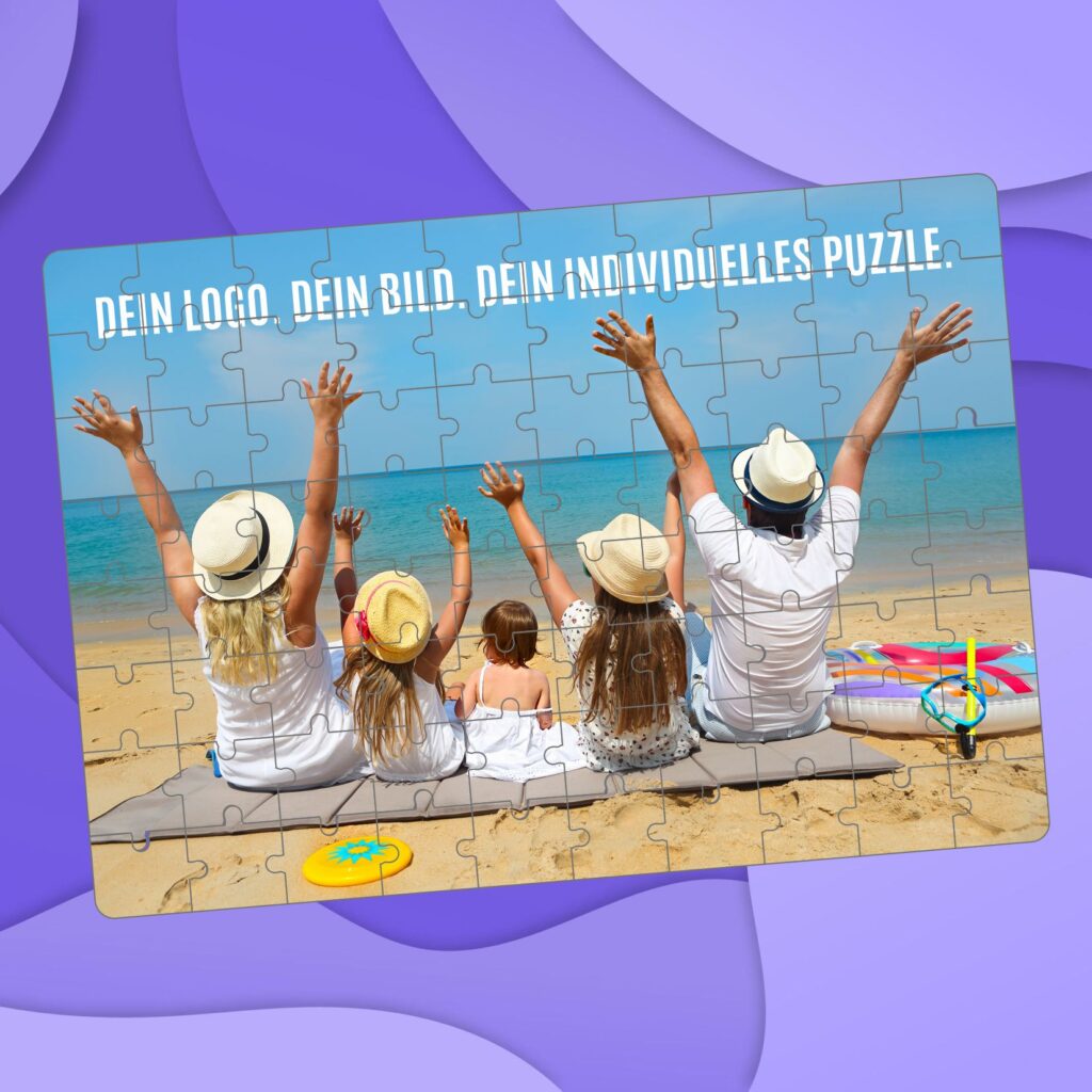 Machen Sie Ihr Marketing zum Erlebnis: Das individuelle Werbepuzzle mit 80 Teilen ist ein originelles und aufmerksamkeitsstarkes Kundengeschenk, das Emotionen weckt und nachhaltig in Erinnerung bleibt.